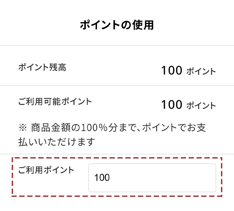 ①お買い物かごからご注文の手続きに進み、ご利用ポイント欄に使用したいポイントを半角数字でご入力ください。