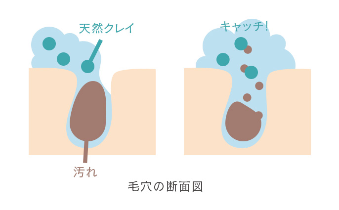 2種の天然クレイ(クチャ※1、グリーンクレイ※2)が毛穴の奥まで入り込み、汚れをやさしく絡めとります。 皮脂汚れがプラスの電気、天然クレイがマイナスの電気を帯びているので、肌に泡を乗せるだけで汚れを吸着。 使うほどに毛穴汚れやくすみ※3が気にならない肌へ。